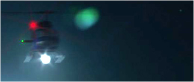 We composited our CG News Helicopter in with live actors and added a practical effect spot light for a more realistic effect.